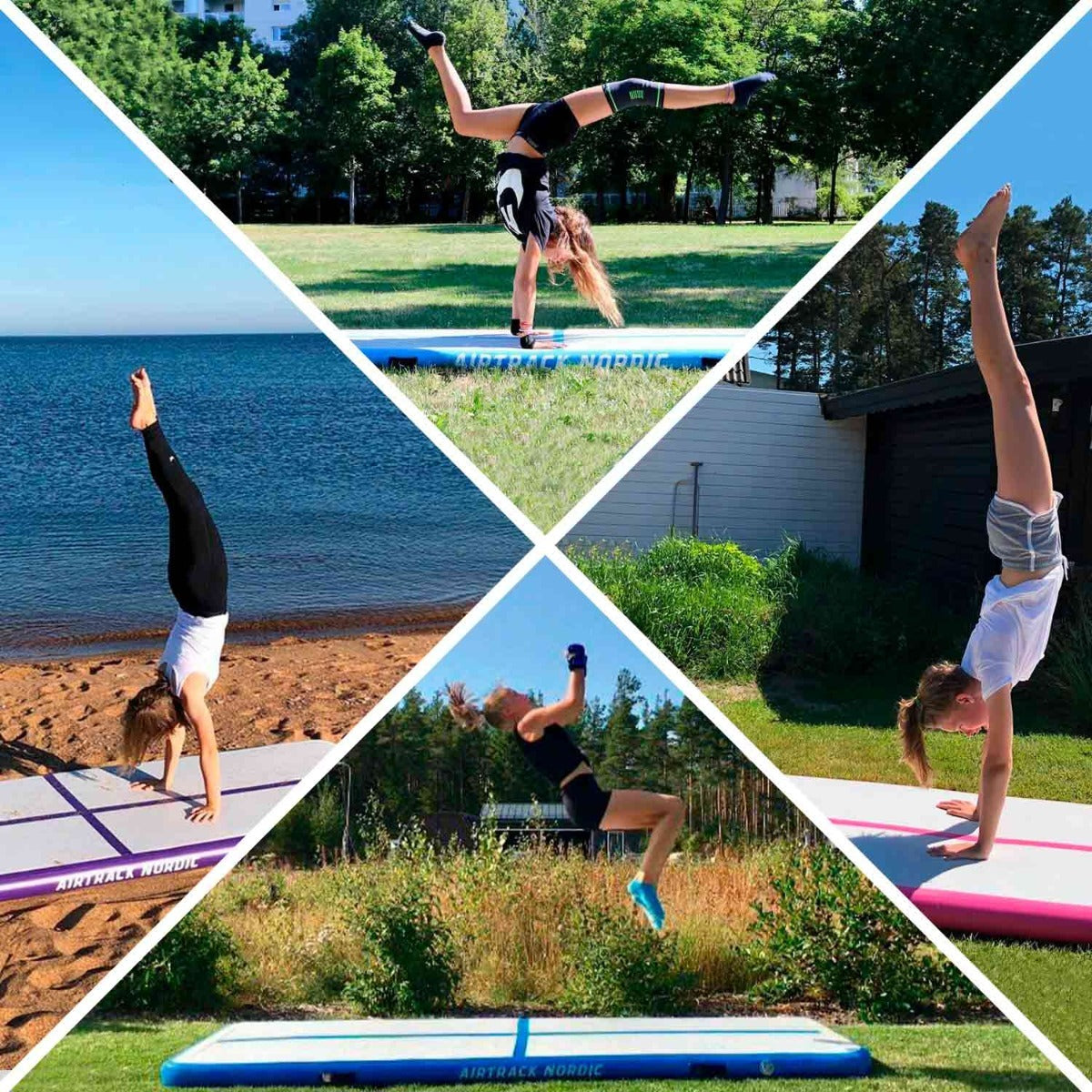 The AirTrack Nordic Home is a 3 meter long, 1 meter wide and 10 cm thick premium AirTrack intended mainly for home use in your living room or backyard.